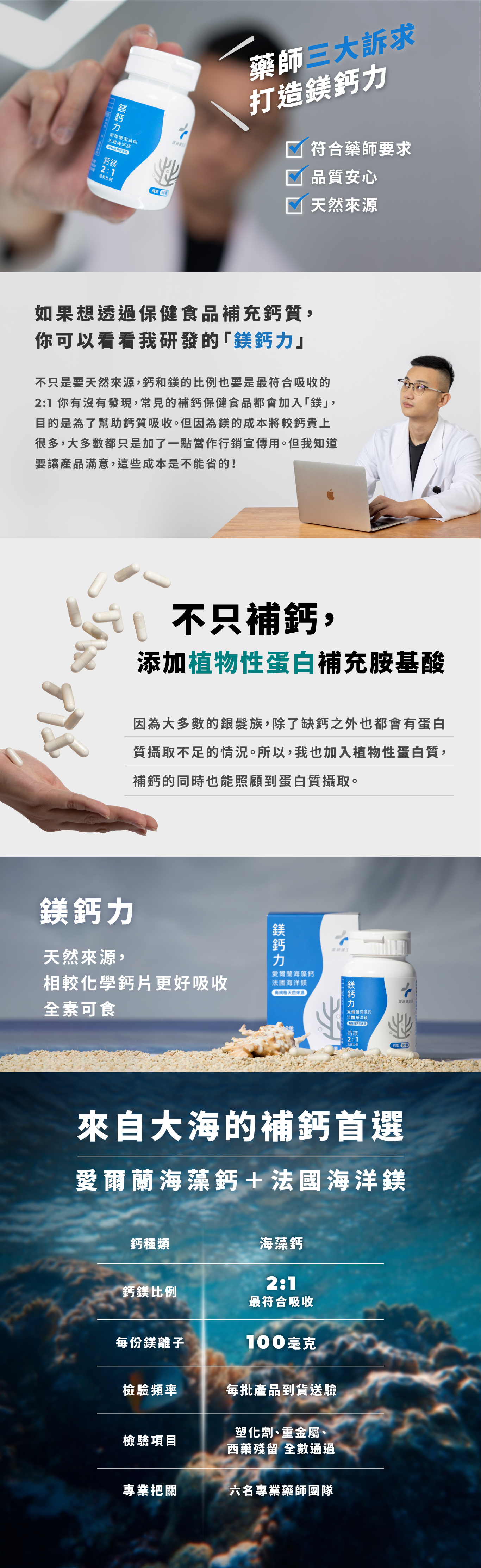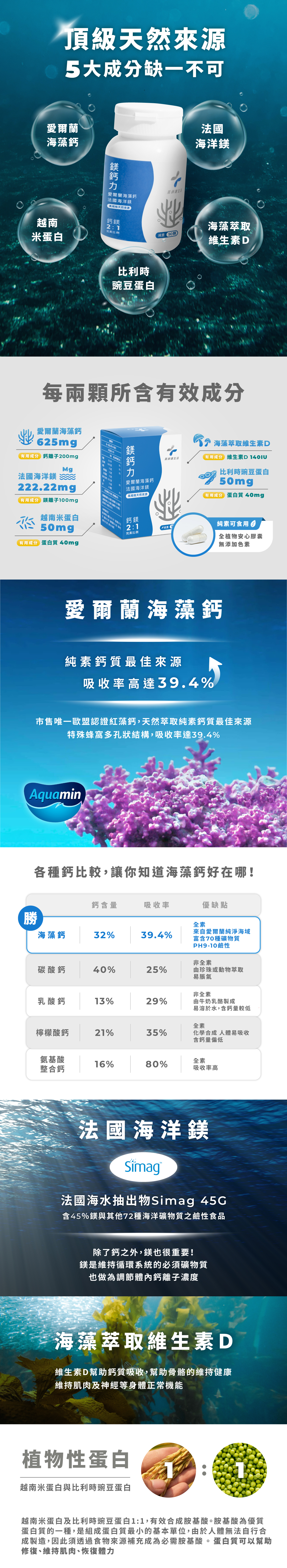 成 分|愛爾蘭專利海藻鈣、海水萃取物(鎂、 羧甲基纖維素鈉)、維生素D、米蛋白、豌豆蛋白、硬脂酸鎂、二氧化矽